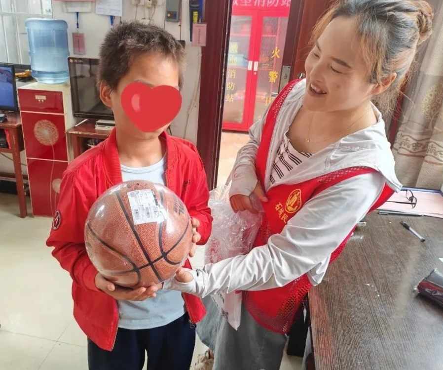 局干部携手县阳光社会工作服务中心社工,对流动儿童、困境儿童开展爱心走访,并将社会各界爱心人士捐赠的书包文具、课外读物、健身用品、运动鞋服等爱心物资发放到孩子们手中,帮助92名困境儿童点亮“微心愿”、喜圆“童心梦”。图为社工上门入户为困境儿童发放“微心愿”物品的喜人场景。(宋贤霖 供稿)