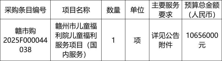 关于赣州市儿童福利院儿童福利服务项目(项目编号:GZYQ2025-GZ-G002-2)的电子化公开招标公告