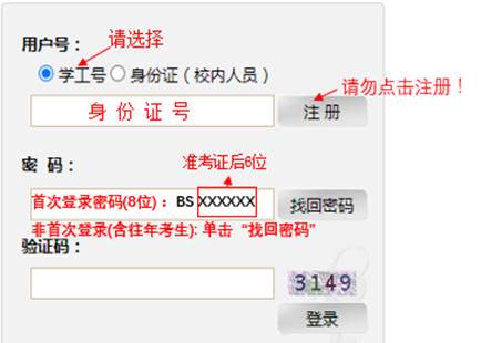 财务处”,在“业务办理”中选“学生缴费”。考生账号已开通,切勿自行注册。复试收费标准:80元/生(仅申请考核考生,硕博连读考生无须缴费)。用户号选择“学工号”,输入正确的身份证号。缴费系统初始密码(8位)为大写字母“BS”加准考证编号后6位(准考证查看网址://yzgmis.taohuasp.org/zsgl/bswb/login.aspx),如“BS123456”。非首次登录缴费系统的考生(含往年报考考生及误注册考生)使用“找回密码”,登录并缴费。