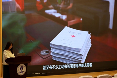 活动开始,负责人带领同学们了解了遗体捐献与器官移植的概念以及遗体捐献的途径,并以相关的事例报道介绍了遗体器官捐献在我国的普及率及公民支持情况。活动负责人表示,遗体器官捐献事业是“人道、博爱、奉献”红十字精神的充分体现,它能促进医学教育事业的不断发展,是一项爱的传递,是造福社会、造福人类的公益事业。