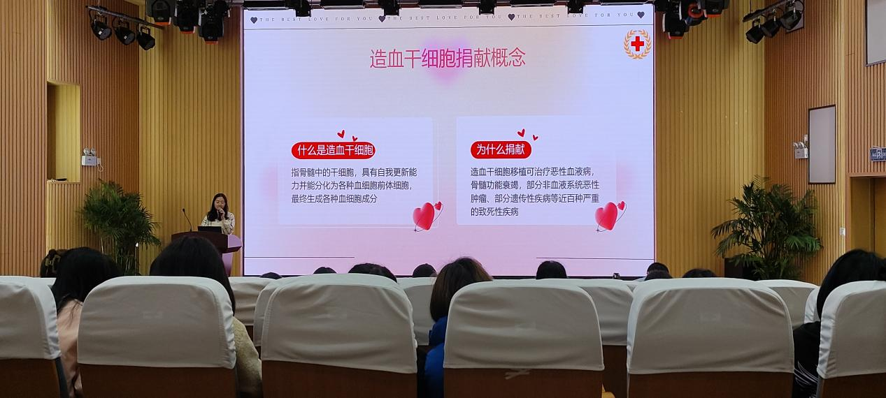 星火计划志愿服务团队在校内成功举办了主题为“与爱同行,生命相‘髓’”的科普宣讲活动,讲座旨在向大学生们宣传、普及造血干细胞捐献的相关知识,提高其对“三献”的科学认识及生命健康意识。