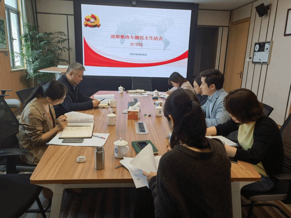 委员会巡察整改日常监督办法》(江大委【2021】33号)文件和学校巡察整改工作要求,2021年4月26日上午,医学院领导班子在C207会议室召开了专题民主生活会。副校长徐岩参加并给予指导,党校专职副校长兼党委组织部副部长周雪晖列席,学院领导班子全体成员参加专题民主生活会议。党委书记向琪同志主持会议。