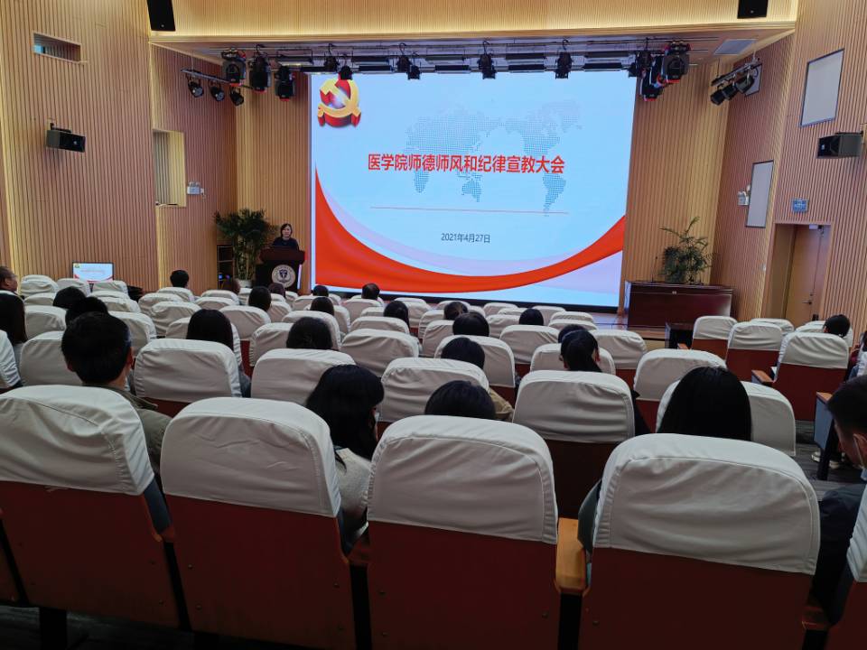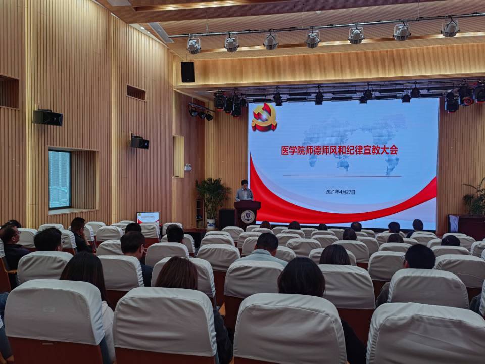4月27日下午,医学院召开师德师风和纪律宣教大会,医学院全体教职工参加会议,会议由向琪书记主持。