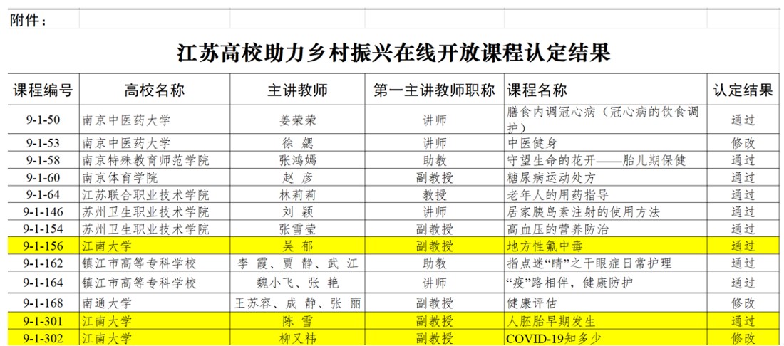 陈雪老师主讲的《人胚胎早期发生》、吴郁老师主讲的《地方性氟中毒》、柳又祎老师主讲的《COVID-19知多少》3门课程成功入选。
