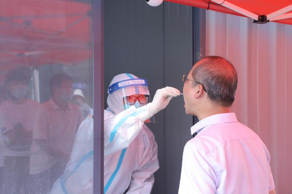 医学院志愿者进行核酸采样