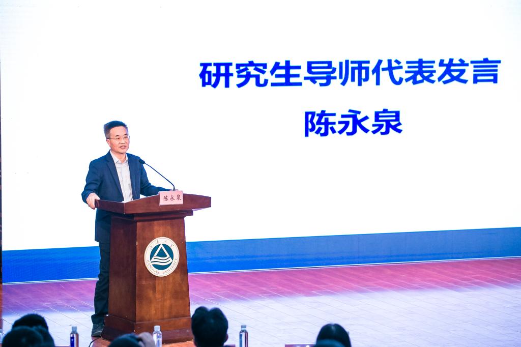 研究生导师代表陈永泉,新生班主任代表张梁分别代表研究生导师和新生班级班主任进行了发言。陈永泉希望新生们学会团队协作、接纳失败、忍受孤独;在成为良医的途中始于聪慧,终于敦厚;在解除疾患、普救含灵之苦的路上始于初心,终于信仰。张梁希望同学们向一线医护工作者学习,向老师们学习,向身边的励志榜样学习;在大学生活里追求更有高度、更有温度的医学人生。