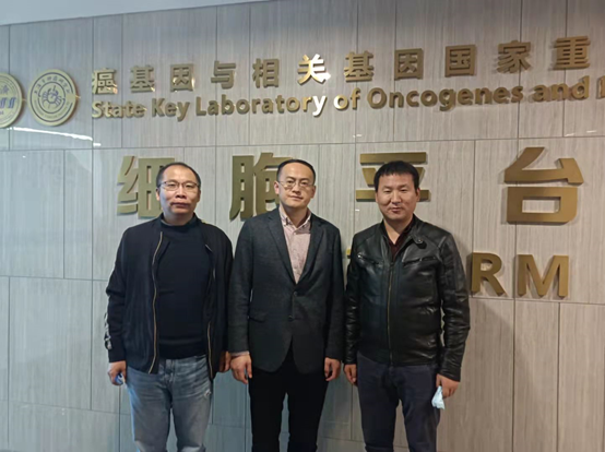 副院长兼附属医院副院长赵鹏、医学科研中心主任冯磊、基础医学实验教学中心副主任程建青、医学科研中心技术人员周益舟、侯豹、黄术兵赴上海市肿瘤研究所走访调研。