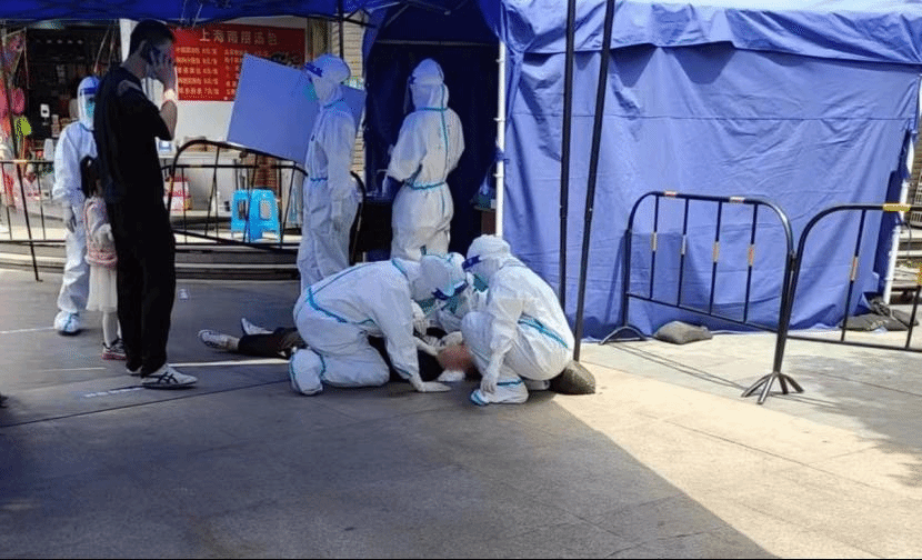 抗疫采样队员正在昆山市高新区大学园区社区开展核酸采样工作,当日天气炎热,参加测核酸的群众很多,这时突然有一名12岁的女孩晕倒,离其最近的4号采样点桃花视频