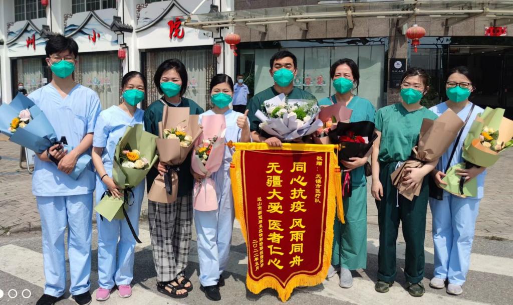 援苏核酸检测教师志愿者奋战16天,四战张家港,九战昆山,累计采样70000余例,圆满完成援苏核酸检测任务。无锡市副市长秦咏薪、无锡市卫健委党委书记兼主任笪学荣、党委副书记过栋、副主任王新华、医学院院长马鑫等领导在南泉站口迎接志愿者队伍凯旋。