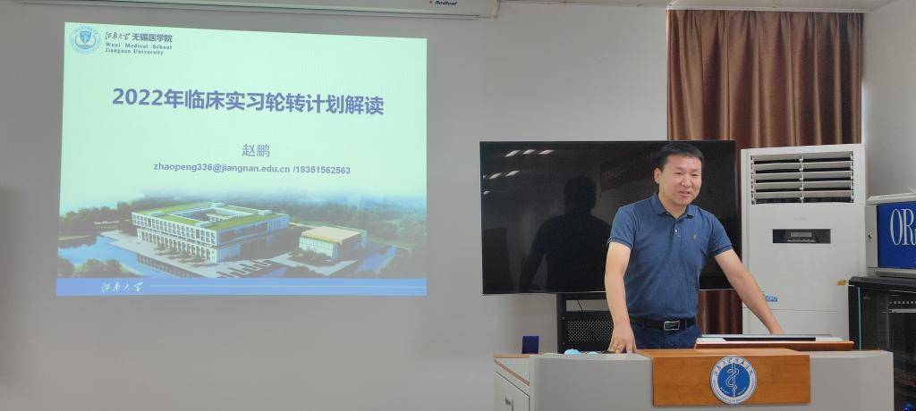 医学生培养方面的成果。而后,赵鹏副院长从实习轮转表、临床实习教学过程、临床实习带教师资、出科考核等方面详细解读了2022年临床实习轮转计划。接着,院领导和实习带教教师代表上台为同学们颁发实习用品和医院纪念品。最后,教育处处长徐德武做实习岗前宣讲,详细介绍了医院各项实习规章制度和安全制度。