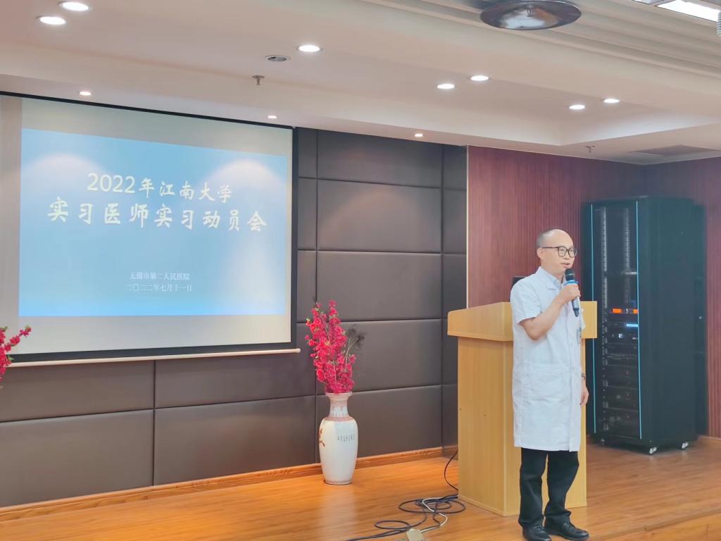 无锡市第二人民医院进点实习培训会在二院北院区举行,二院科教处处长赵霞主持会议。首先,夏加增副院长致欢迎辞,介绍了二院百年历史,期待同学们在二院获得丰富的医学知识和难忘的人生经历。而后,实习带教教师代表分享实习经验,提出实习是对所有科室基本知识基本技能全面了解的阶段,同学们应该保持热情保持好奇,积极练习各项临床基本操作,注重临床实践。接着院领导为实习生颁发实习用品和医院纪念品,而后实习生代表上台发言,承诺将抓住每一个学习和锻炼的机会,用实际行动践行“健康所系,性命相托”的誓言。最后,赵鹏副院长再一次详细解读2022年临床实习轮转计划。