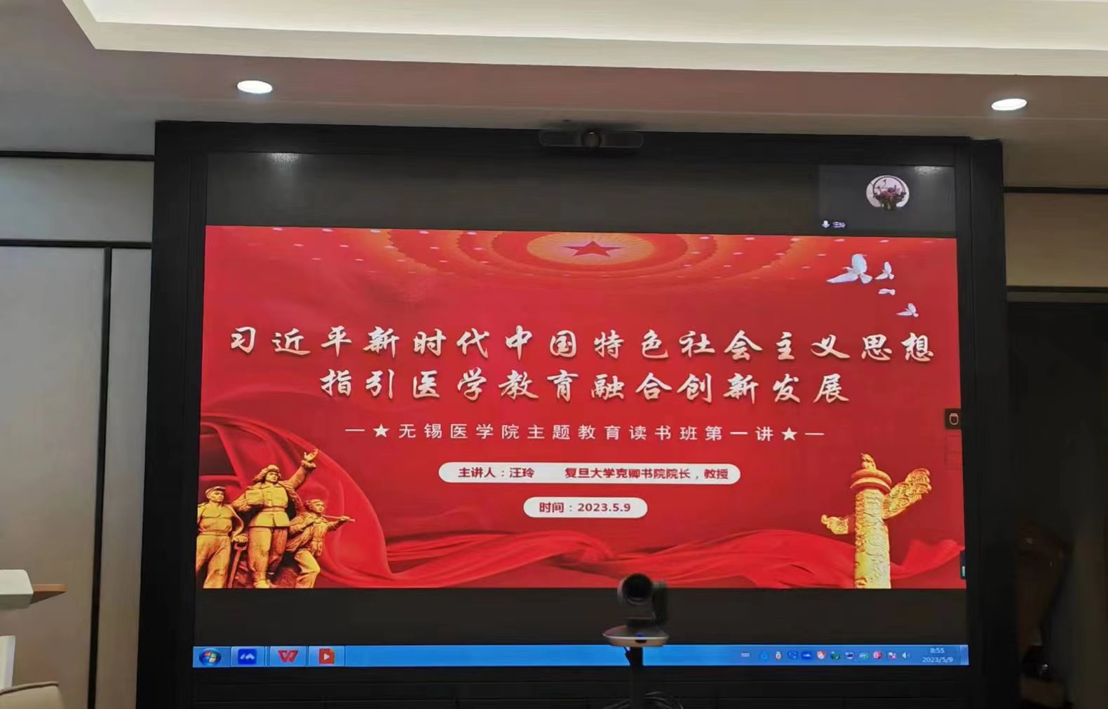 在C207会议室开展学习贯彻习近平新时代中国特色社会主义思想主题教育读书班专题学习,特邀复旦大学医学研究所所长、复旦大学克卿书院院长、汪玲教授以《以“四个面向”引领一流研究生教育》为题进行线上专家辅导报告。学院党委理论中心组、系主任、院长助理参加了读书班活动,活动由学院党委书记向琪主持。