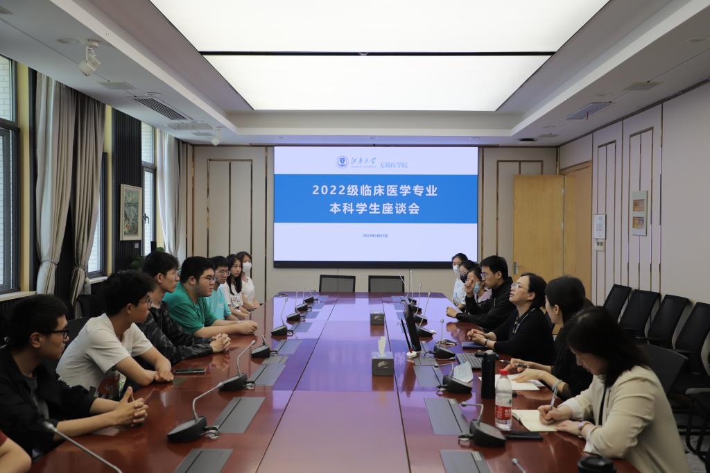 党委书记向琪,党委副书记、副院长包羽,副院长陈雪,副院长程洋,教务秘书孙洁芸,2022级辅导员鲁钦正出席座谈会,2022级临床医学本科生代表参加座谈会,会议由向琪主持。