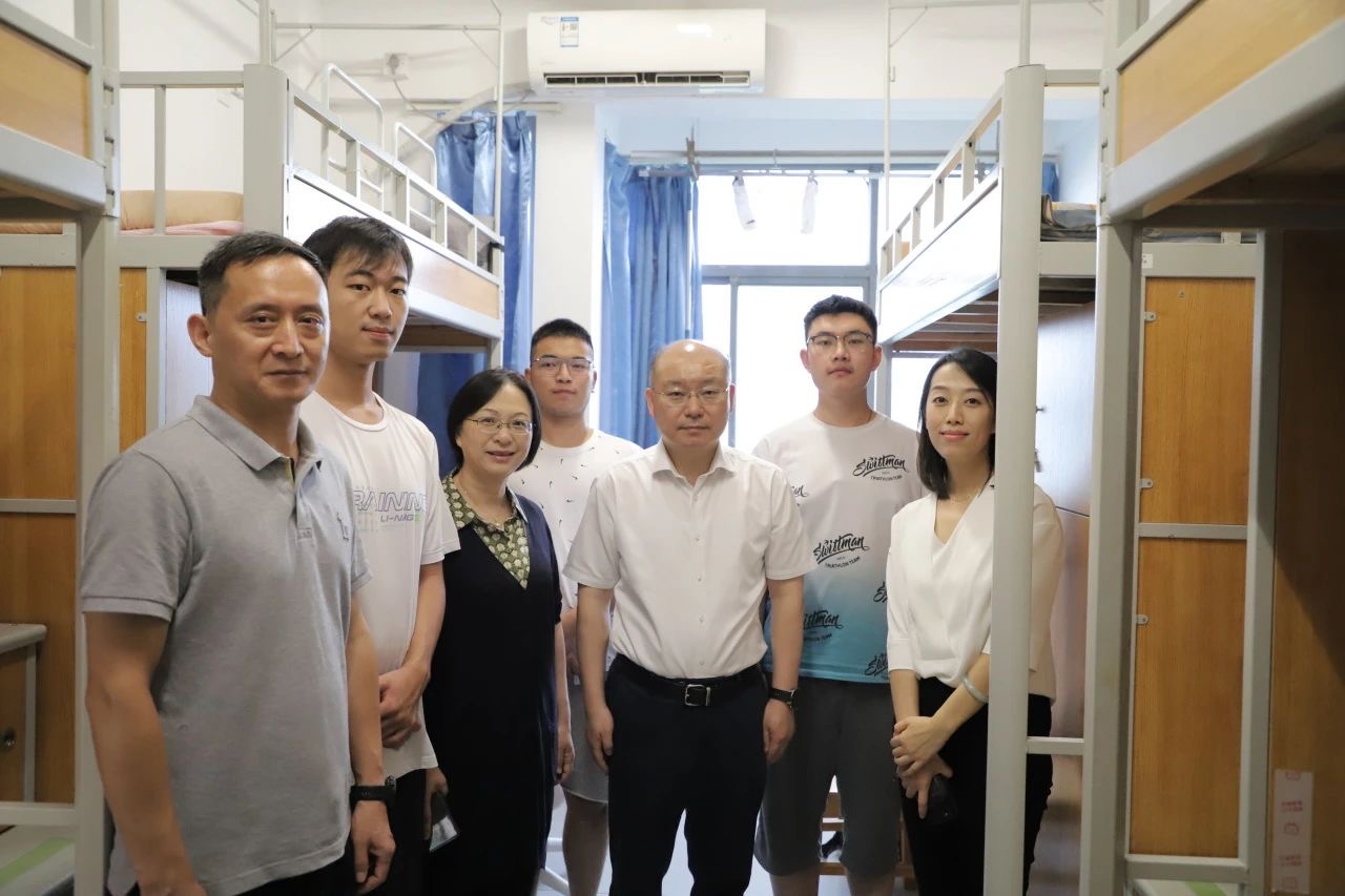 附属医院教育处处长徐德武,医学院教授黄亿、韩甦和辅导员李奈夏、鲁钦正老师等亲临报到现场,并走访新生宿舍,亲切慰问新生入学情况。“同学,你来自哪里?”“对宿舍还满意吗?”“为什么选择学医,是家里也有亲人学医吗?”领导们与新生亲切交流,并对不同学科专业的学生均给予了有针对性的科研学习建议,鼓励同学们要学会利用学院和医院双平台,做好学习规划,加强科研攻关,以积极的心态迎接大学生活,在崭新的医学道路上行稳致远。