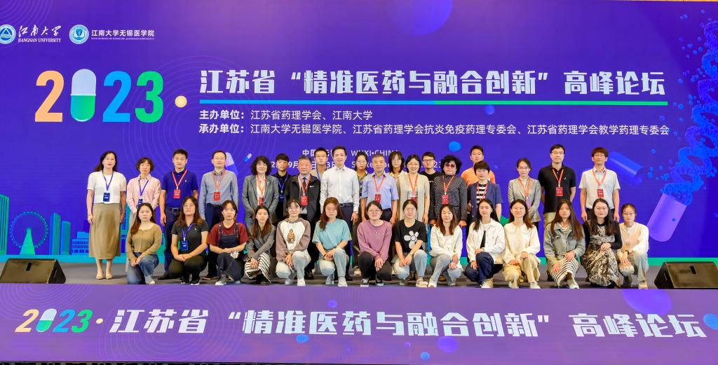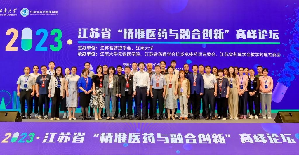 、江苏省药理学会抗炎免疫药理专委会和江苏省药理学会教学药理专委会共同承办的江苏省“精准医药与融合创新”高峰论坛在无锡君来湖滨饭店成功举办。会议旨在全面贯彻落实党的二十大精神和长三角一体化发展战略,扎实推动药理学科的发展、融合创新以及药物的临床科学应用,全面提高长三角药理学科研和教学水平。大会以现场和线上两种形式同时进行,来自全国高校、医院、科研院所等从事药理学研究工作的近200名专家、学者、研究人员和研究生参加了本次会议。