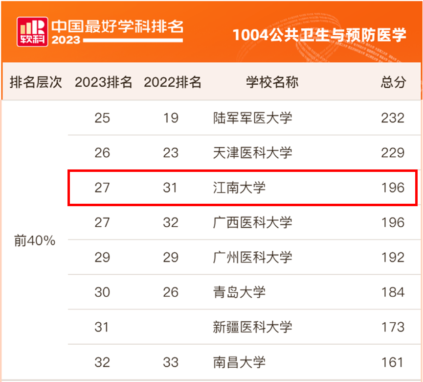 2023年11月8日,高等教育评价专业机构软科正式发布“2023软科中国最好学科排名”。排名指标体系由人才培养、平台项目、成果获奖、学术论文、高端人才5个类别组成,下设18个指标,包括70余项测量变量。在“2023软科中国最好学科排名”——公共卫生与预防医学学科排名中,全国共入围医学院校81所,桃花视频