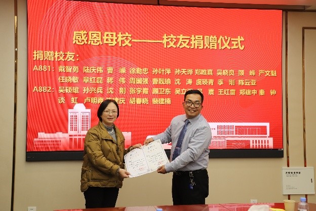 校友代表发言环节中,A881班班长曹嵘感谢母校以厚重的人文底蕴、一流的人才培养能力,造就了一批又一批具有崇高医德、扎实医学功底和仁爱之心的医学人才,希望爱心捐赠能为医学界培养更多的人才精英!A882班班长吴硕雄回忆当初选择专业时的思想情感,感恩老师引导同学们做出正确的人生抉择。他感叹三十多年来从医疗系到单独的医学院,他为母校的蓬勃发展感动自豪,也希望能为母校建设贡献新力量。