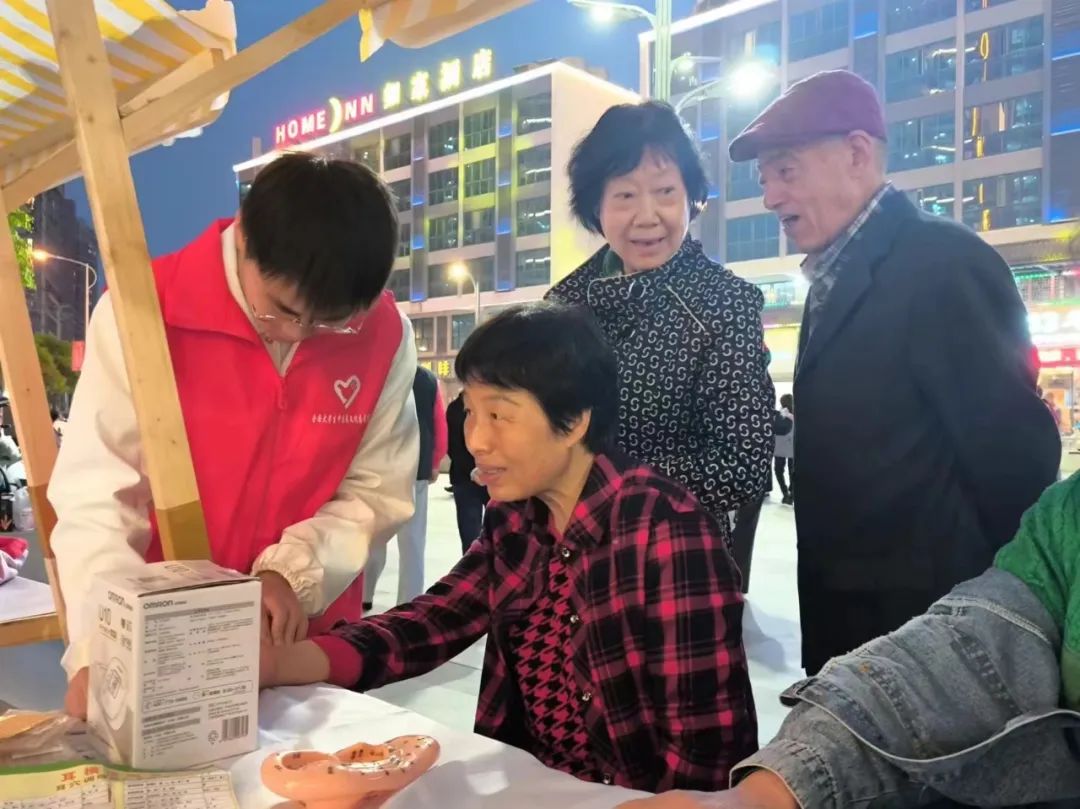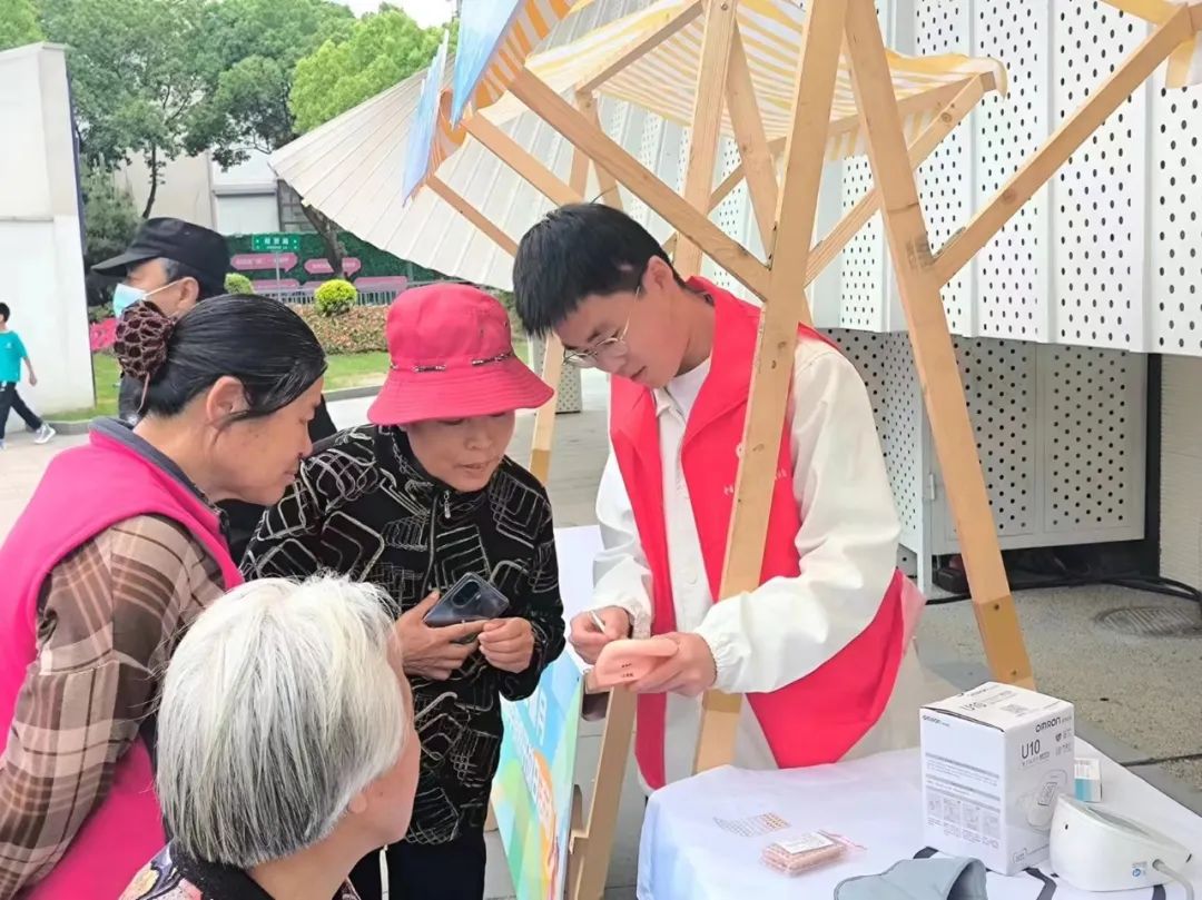 在活动现场,青囊中医社的志愿者同学们为来往市民提供耳穴压豆、免费脉诊、血压测量等健康服务,凭借中医知识,为市民们提供了实用的健康咨询和建议。往来市民们络绎不绝,纷纷前来咨询和体验。志愿者们耐心地为市民们解答疑惑,细致地进行脉诊和血压测量,并现场演示了耳穴压豆的操作方法。参与活动的市民们纷纷表示,这次活动不仅让他们深刻感受到了中医的神奇魅力,还让他们对中医药文化有了更深入的了解和认识。