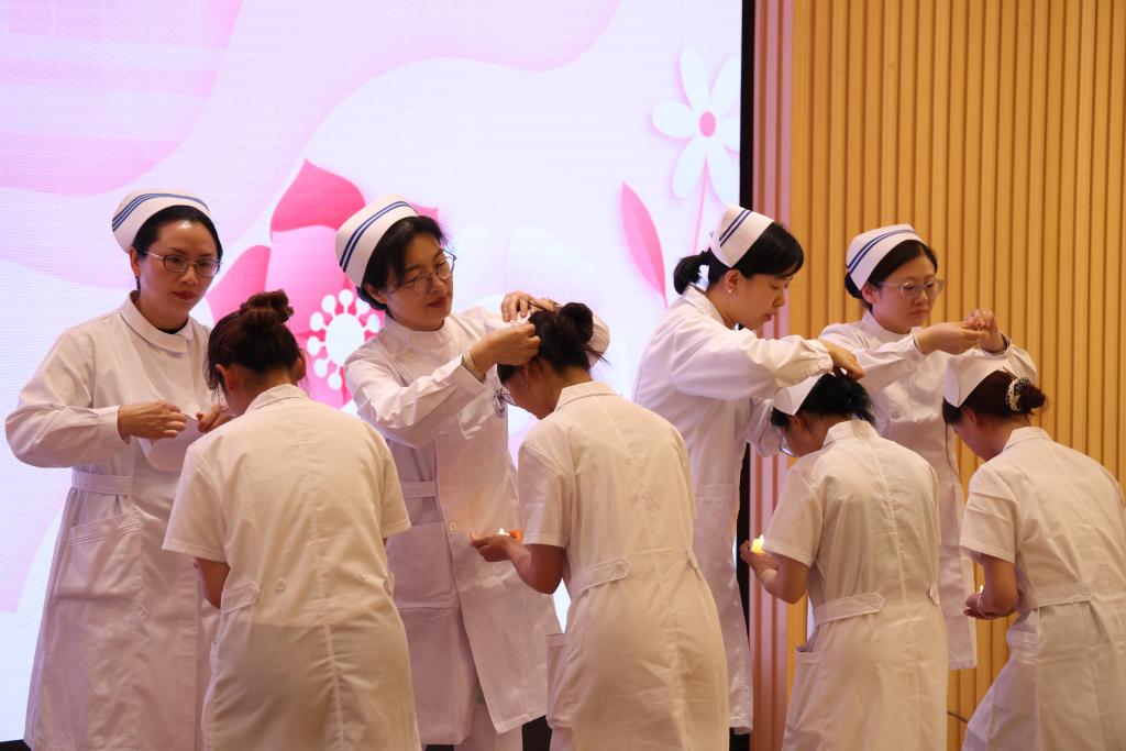 附属医院护理专家为2022级护理专业同学授帽,同学们接过前辈手中的蜡烛,戴上庄严的燕尾帽,将南丁格尔精神铭记于心。授帽仪式结束后,在桃花视频
