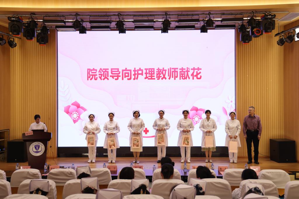 执行院长孙宁教授代表学院向护理教师送上节日的鲜花和真挚的祝福,肯定她们为护理教育事业做出的默默奉献。