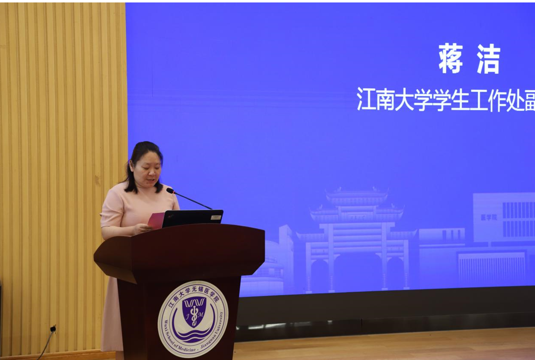 学生工作处副处长蒋洁宣读医学院成长相伴工作室心理育人导师聘任决定