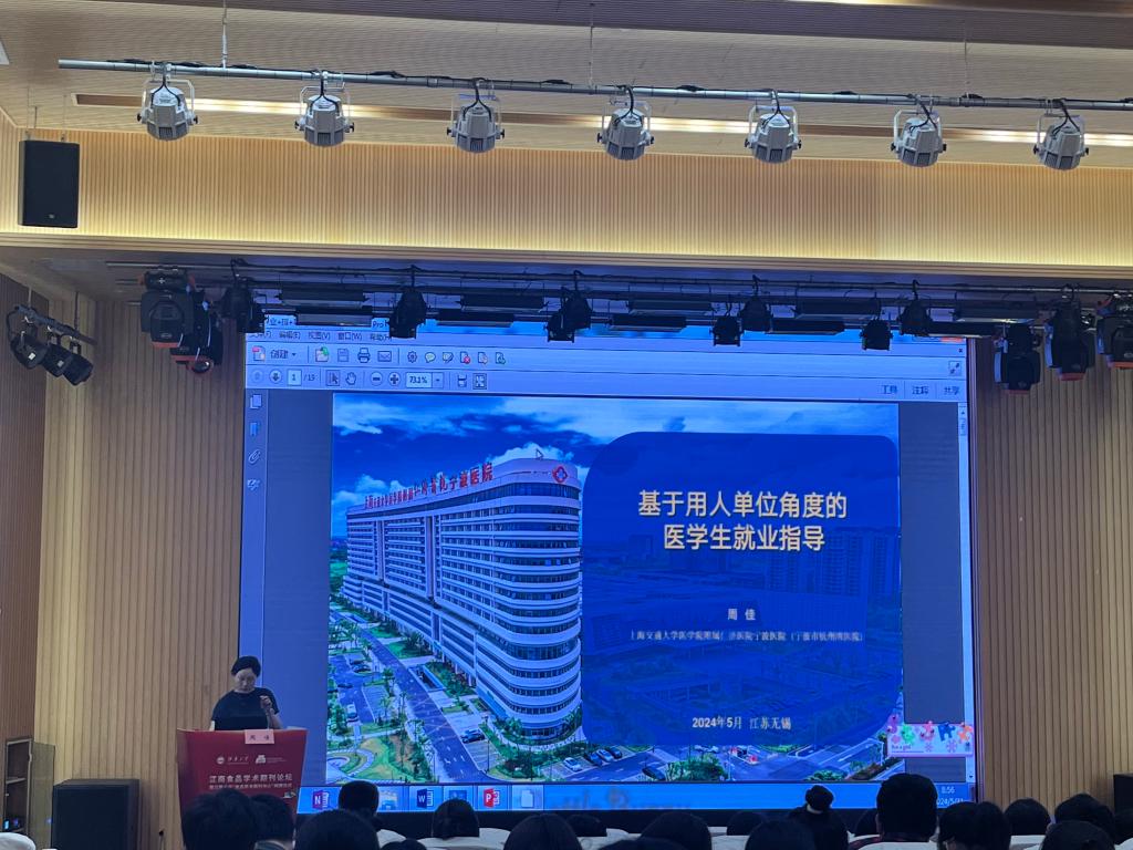 举办“医学生职业规划与就业指导”主题讲座。上海交通大学医学院附属仁济医院杭州湾院区党办副主任周佳担任主讲嘉宾,活动吸引了100余名研本医学生及相关专业教师到场聆听。