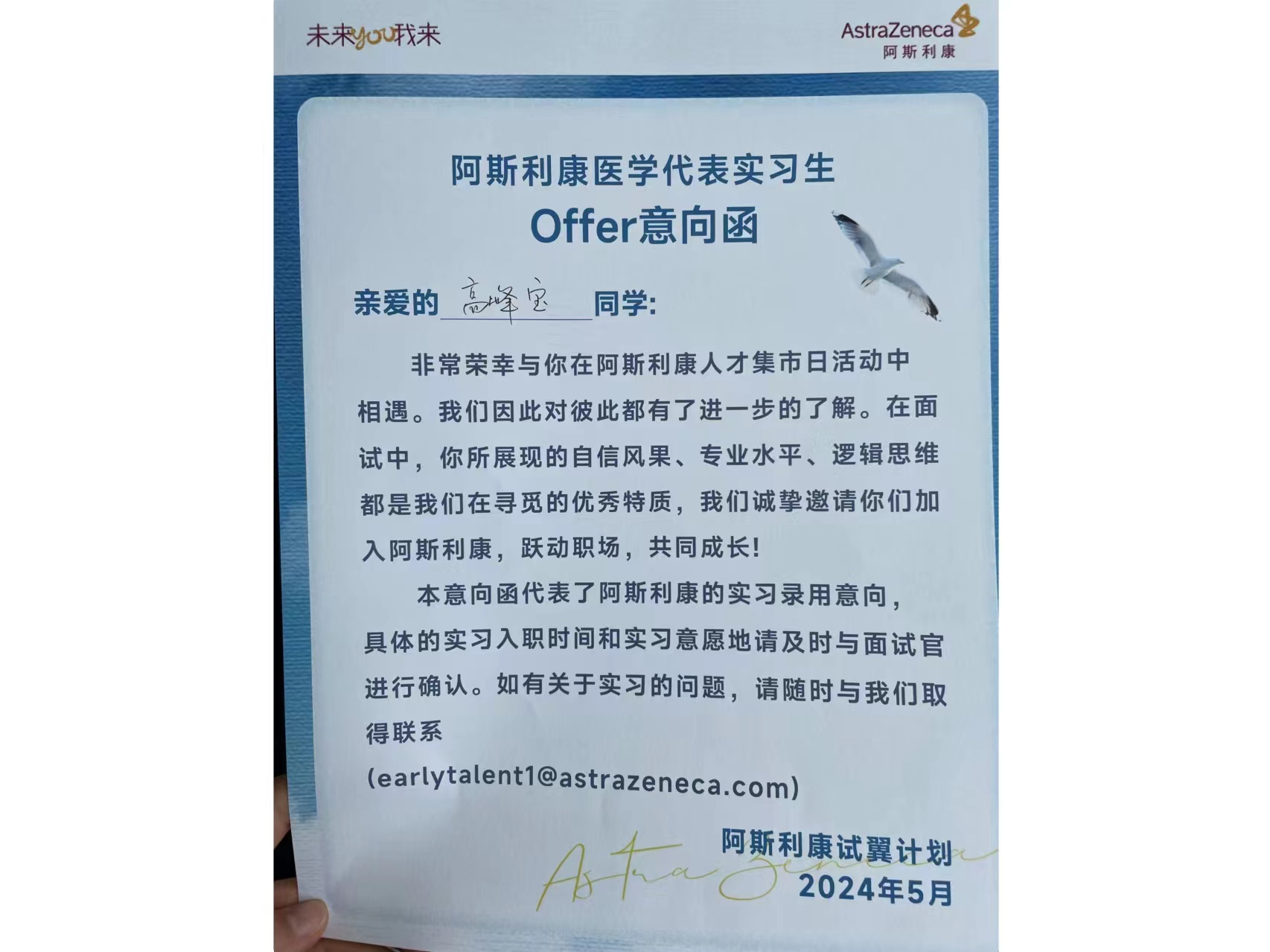 学生详细了解阿斯利康企业发展、人才选聘标准、员工发展通道、薪酬福利待遇及实习生申请和转正流程。参会学生积极投递简历,认真准备和参加面试。面试结束后,护理2101班高峰宝同学现场拿到实习生offer。