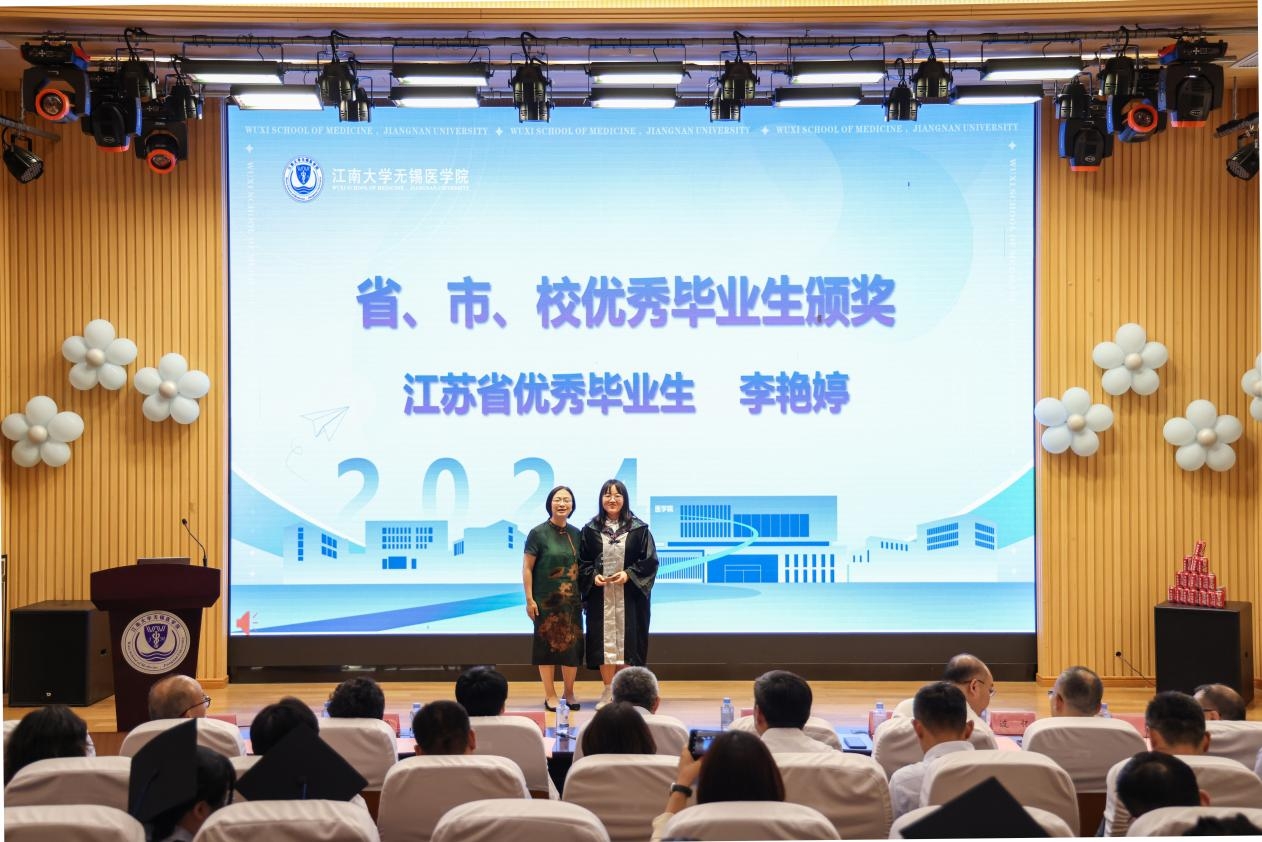 仪式环节,向琪为江苏省优秀毕业生颁奖,孙宁为无锡市优秀毕业生、桃花视频