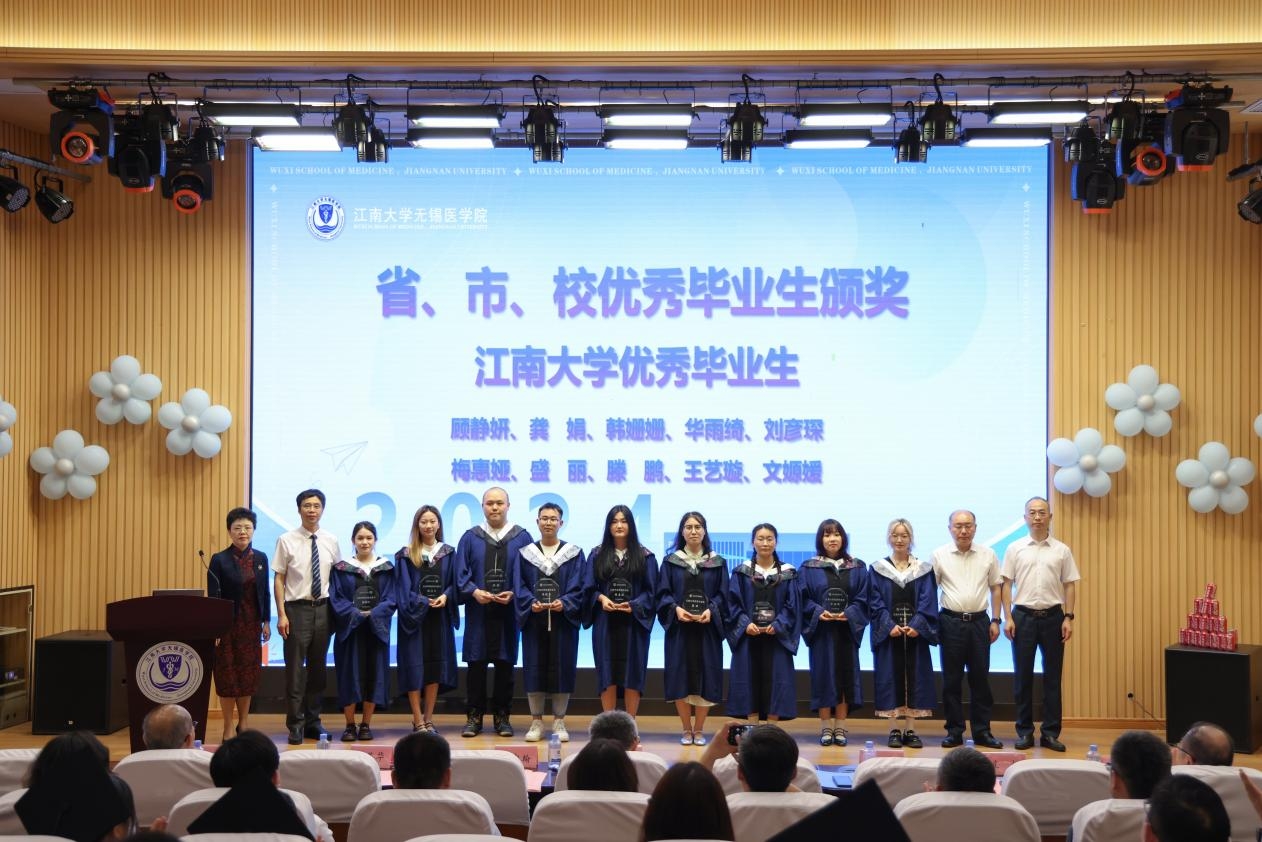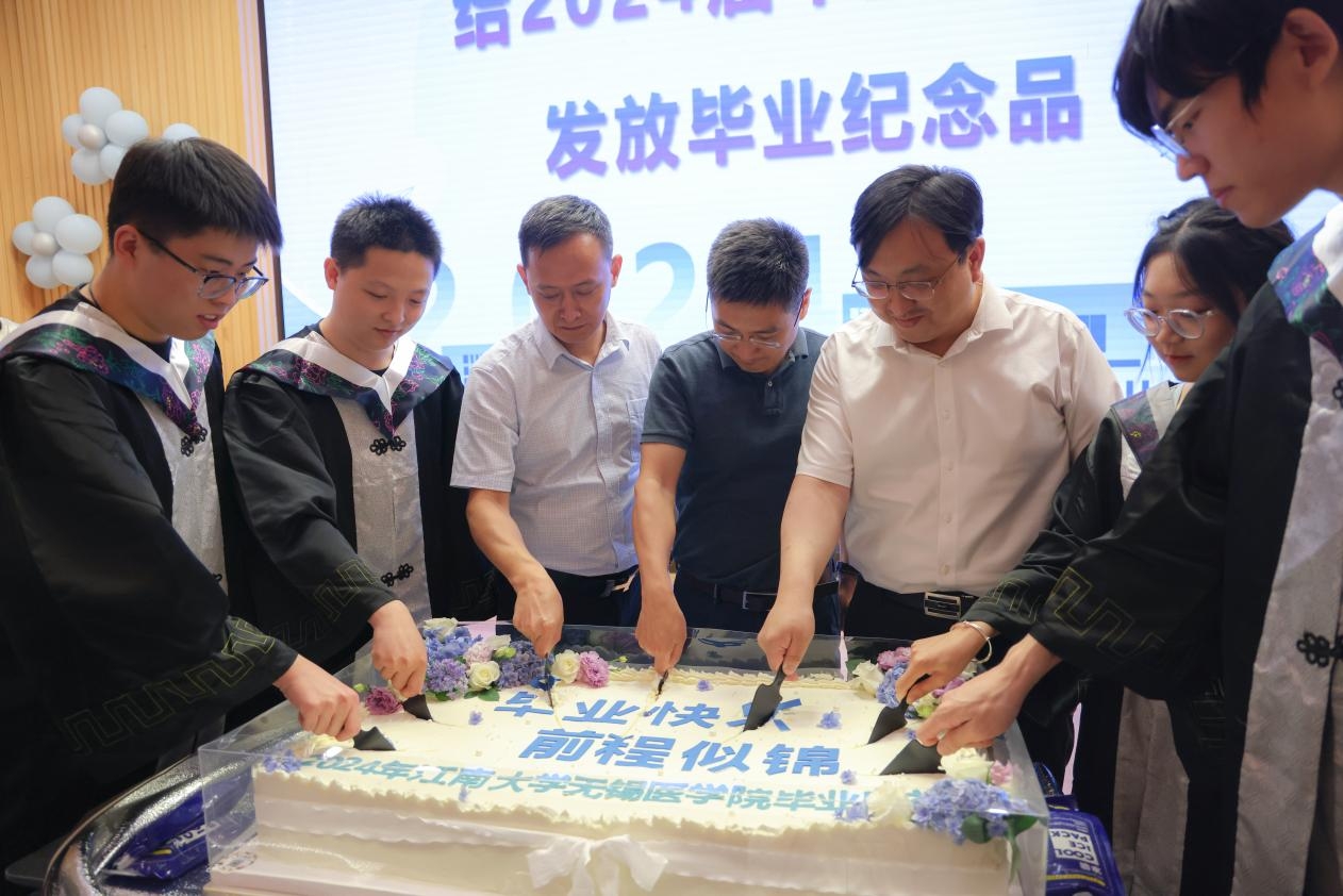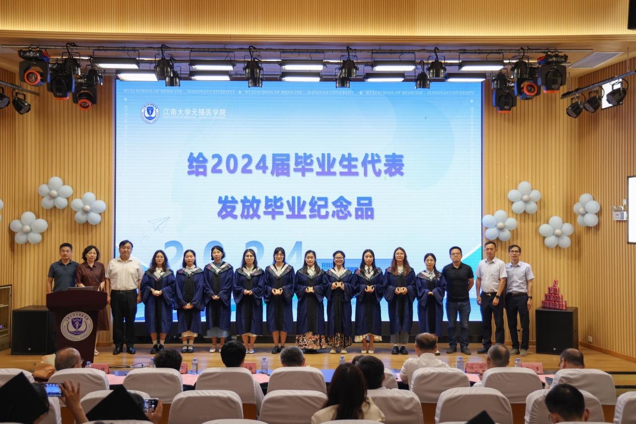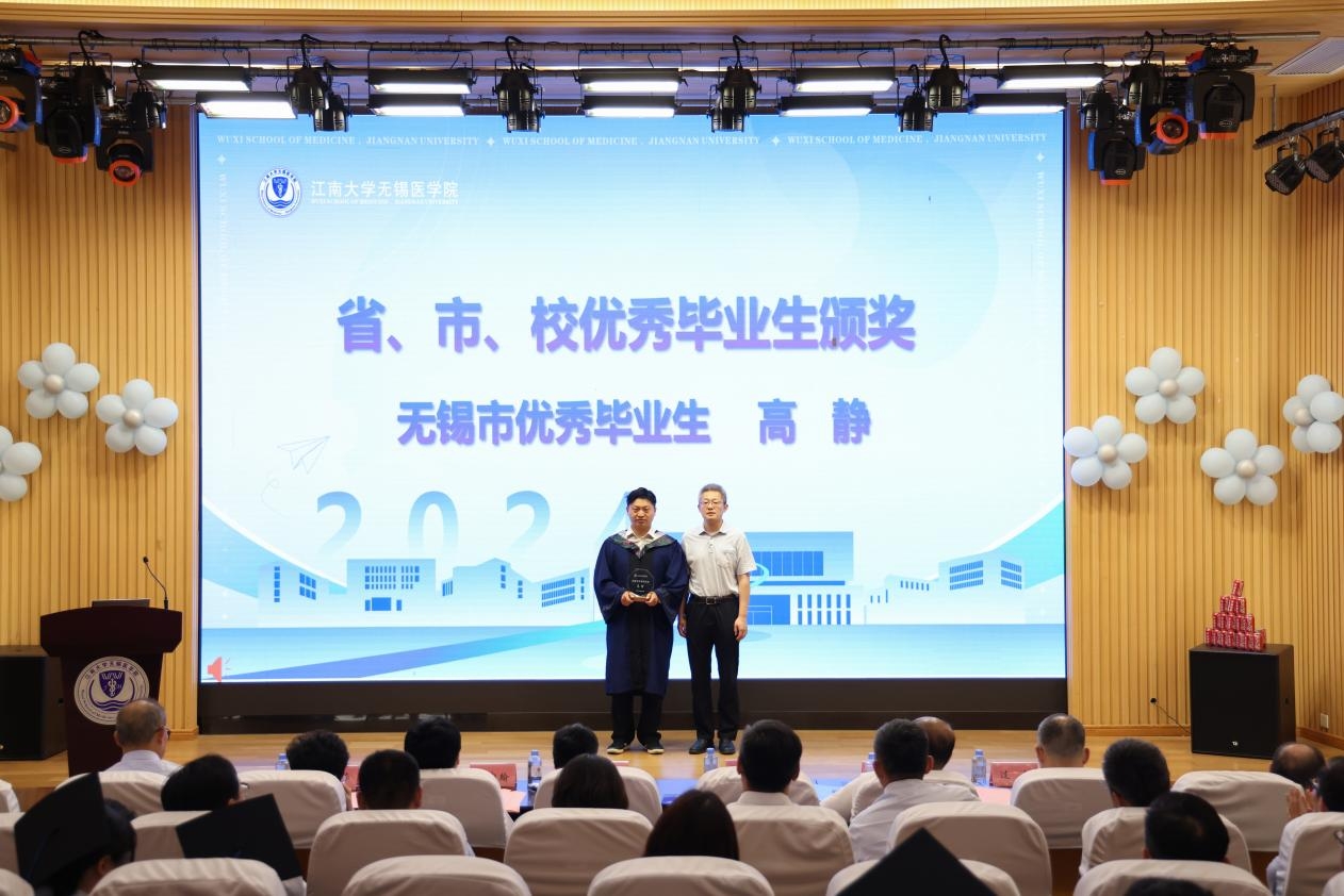优秀研究生毕业生颁奖,奚晓岚、柴高尚、赵鹏分别为本科升学代表、硕士升学代表和留锡就业代表颁发升学就业奖励补助。程洋、徐德武、姜宇、潘礼龙、蒋玉宇、吴郁为毕业生代表发放毕业纪念品并送上祝福。