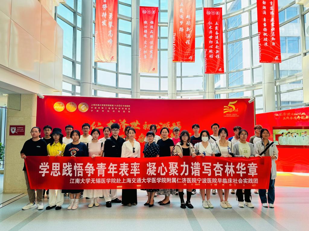 的发展历程、附属医院、专业设置、学科建设、师资队伍、人才培养等方面;并重点阐述了“早临床”实践培养理念,实现基础与临床、理论与实践紧密结合的目标;最后,她寄语同学们笃学敏行、躬行实践,不虚此行。实践团还参观了上海交通大学附属仁济医院宁波医院院史馆,感受上海交通大学附属仁济医院宁波医院品牌卓越、医术精湛的文化氛围,感悟建院以来始终践行“仁术济世”的精神内涵。