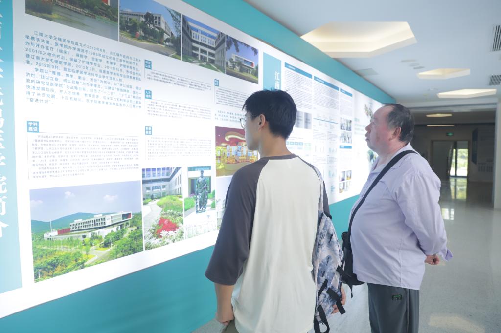 为引导新生尽快融入江大,确保报到流程顺畅无阻,学院提前做好充分准备,不但招募了一批活力四射的志愿者们在学院大厅及宿舍区都精心布置了接待站点,还提前为新生们准备了“爱心材料包”,不但包含专业成长指南和防诈提示,还有独家订制的白大褂和听诊器,除此之外学院领导及班主任、辅导员老师们全天在岗,欢迎各位新家庭成员的到来。学院门口矗立着一幅以"杏林新翠·筑梦江南"为主题的迎新喷绘,还拉起了"万里云程今发轫,杏林春暖始扬帆"的欢迎横幅,学院地面上铺设的医学特色指示地贴指引着新生们进入学院,完成报到的每一个步骤,学院大厅内江南医学学科建设展示让新生们对江南有了初步的了解。一旁安排有独具医学院特色的医学人偶与新生们热情互动,手持手举牌打卡留念。