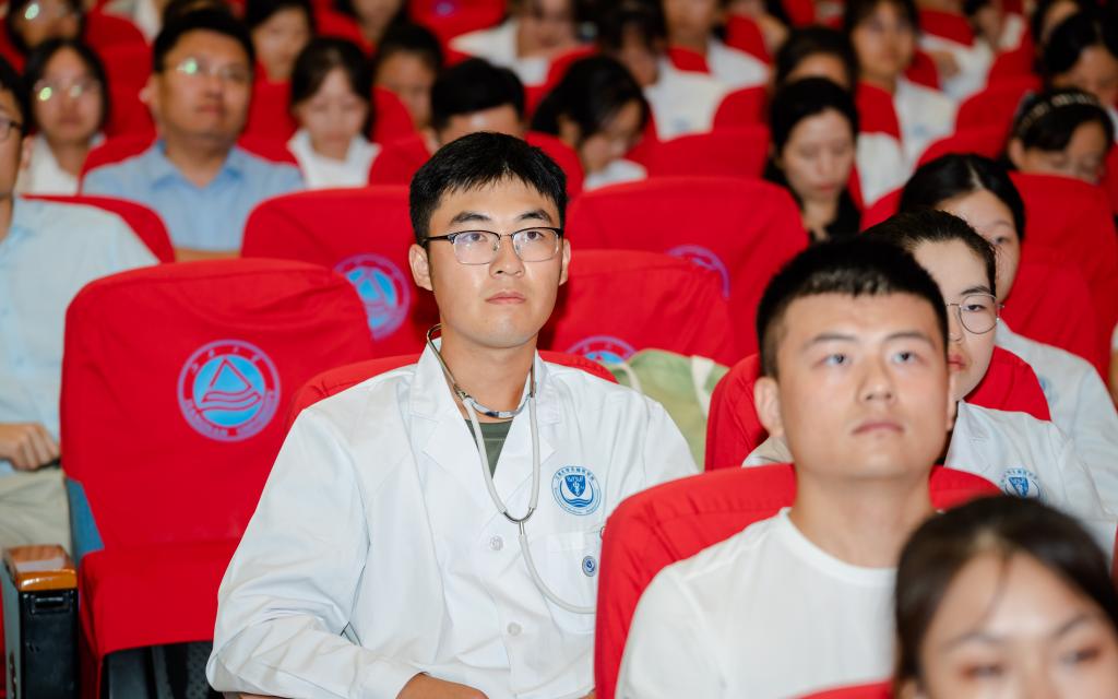 2024级本-硕-博新生的录取情况。围绕市校共建发展历程、医学生培养、师资队伍建设、科学研究以及学科建设等方面详细介绍了学院发展情况。最后,他强调学院将以学生为本,继续深化医学学科建设,持续推进优质教学资源布局,健全高层次人才培养体系,整合最优质的教育资源为同学们成长成才保驾护航。