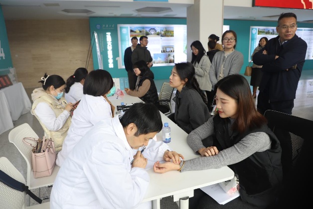 附属医院眼科主任王继红、妇产科主任王元、全科主任陈炜领衔的专家团队,在医学大楼一楼开展公益义诊。通过眼底检查、中医把脉、健康咨询等方式,为教职工及学生们提供个性化诊疗建议,并针对常见疾病预防、饮食调理、季节养生等答疑解惑。
