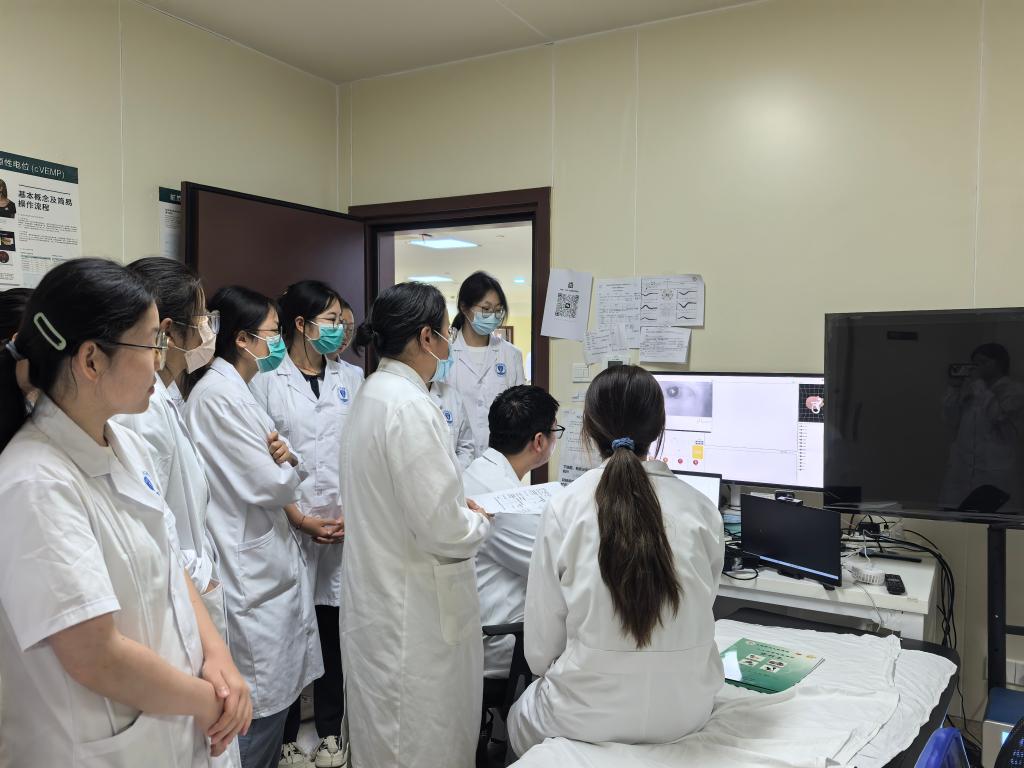 实践期间,同学们分组进入心内科、普外科、耳鼻咽喉头颈外科、眼科等多个临床科室,观摩诊疗流程,学习基础医疗操作。在骨科实验室、组织工程实验室等科研平台,师生们近距离接触3D打印技术、生物材料研发等前沿医学研究,深入了解科技创新在临床医学中的应用。此外,医院还安排了心肺复苏(CPR)和自动体外除颤仪(AED)使用培训,提升学生急救技能。