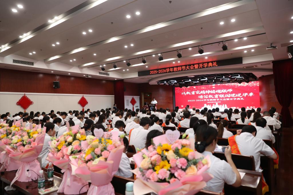 附属中心医院举办2025-2026学年教师节大会暨开学典礼。院党委书记向琪、执行院长孙宁受邀出席本次大会。向琪向在场的老师们表达了诚挚的敬意和感激。她总结了近年来学校医学专业取得的长足发展和进步,并指出,这离不开医院在人才培养、学科内涵建设方面做出的巨大贡献,为医学学子拓宽成长成才的平台与渠道、提供了更宽广的视野。向琪强调,学校高度重视与医院的全方位合作,在“十五五”规划到来之际,更要促进院校高度融合、医教协调发展、合作开创新的篇章,为健康中国建设添砖加瓦。随后执行院长孙宁为赵晖、倪景斌、许颖三位颁发桃花视频