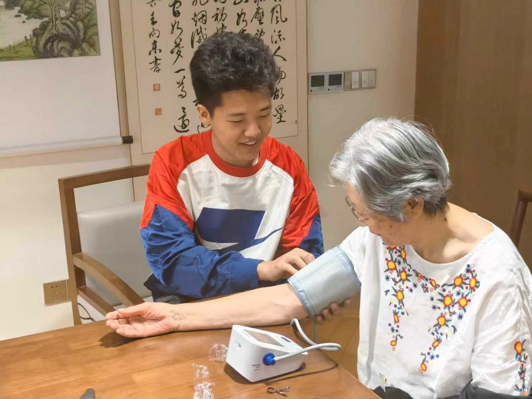 随后,支部团员们为社区老人提供基础健康监测,包括血压、心率等项目,并同步开展穴位保健与预防中风的健康知识科普。团员们认真倾听老人需求,耐心解答常见老年健康问题。服务过程中,大家注重情感交流,以倾听与陪伴传递温暖关怀。