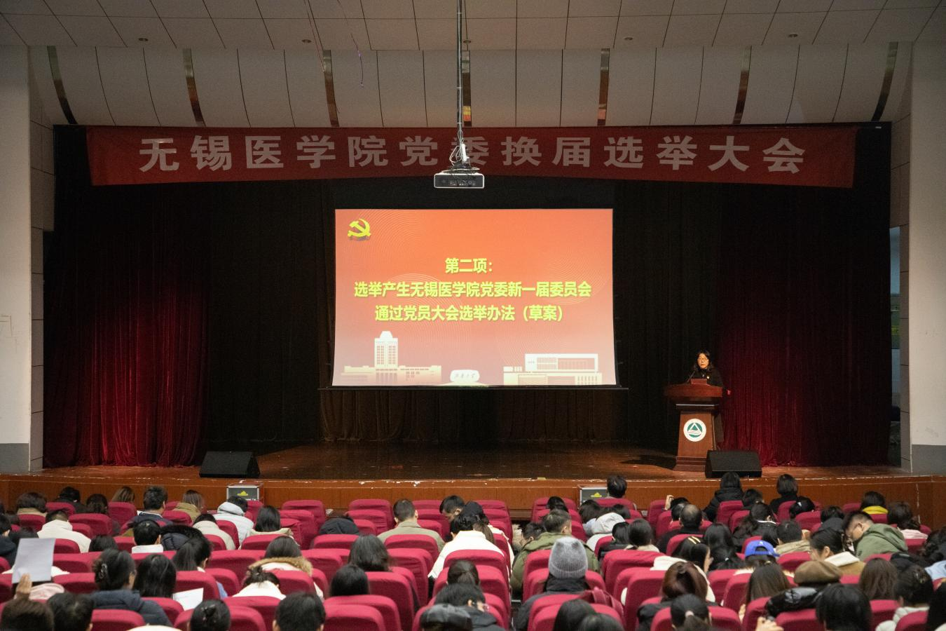 在南区活动中心隆重召开党员大会,选举产生新一届党委委员。全体在校师生党员参加大会,部分党外人士列席会议。大会由学院党委副书记包羽主持。