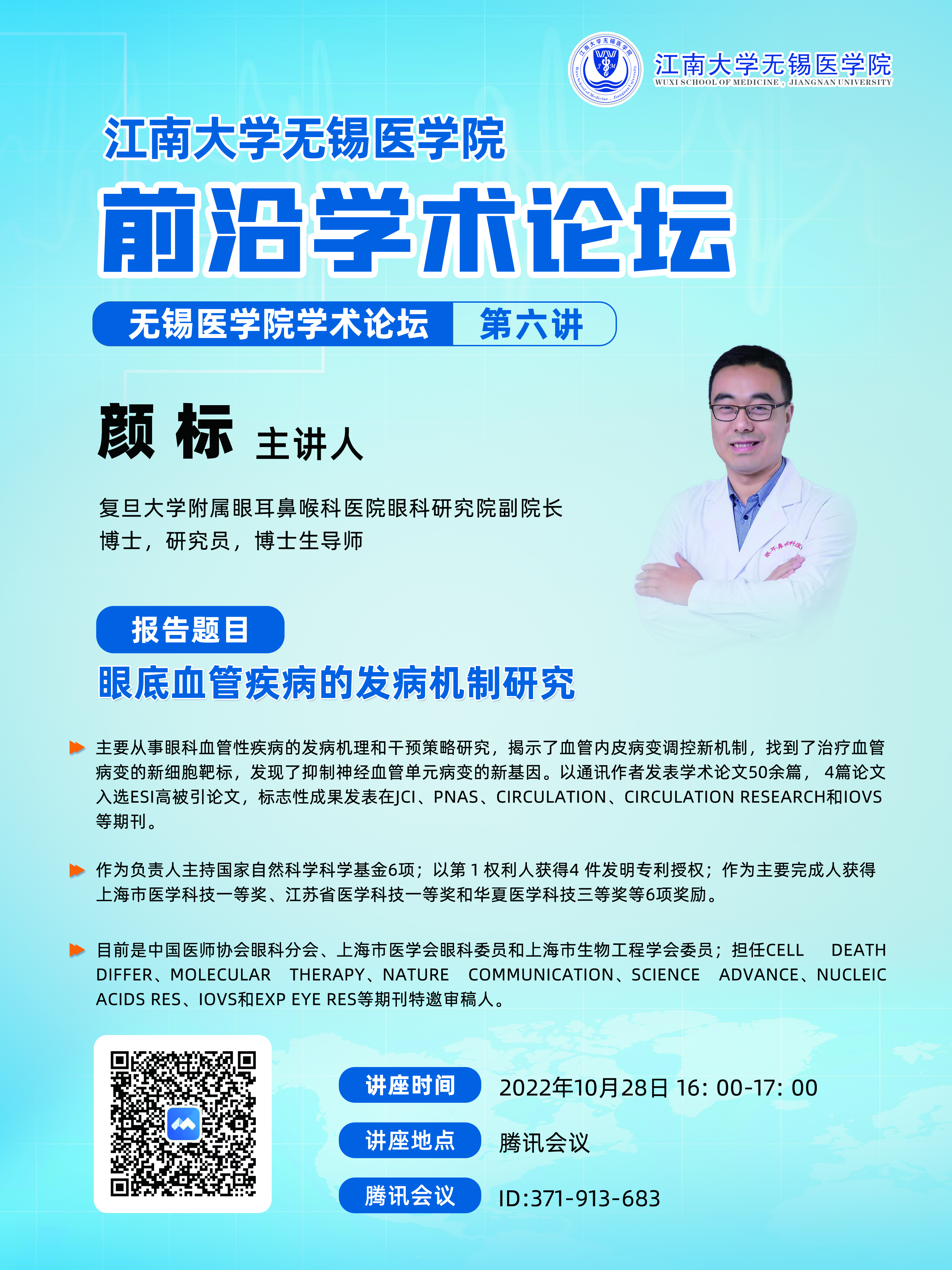 10月28日桃花视频 前沿学术论坛 第六讲——颜标:眼底血管疾病的发病机制研究