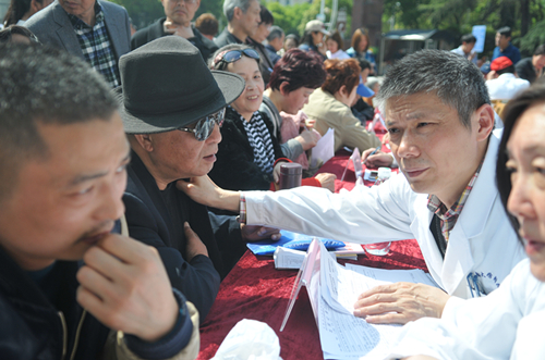中南社区的陈阿姨也拿着片子围在了胃肠肿瘤外科许示心主任义诊台前,一边介绍自己的病情,一边递上在其他医院拍的片子。虽然其病情复杂、资料多,但许主任仍然顶着骄阳坚持把片子一张张看完,一字一句为她分析病情,连身旁的其他市民也忍不住感叹:“这个大主任认真咯,看得仔细咯!”