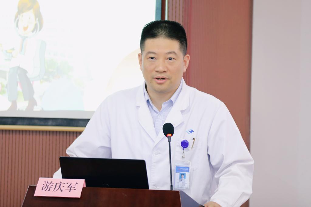 无锡市儿童医院副院长游庆军致开场辞,希望通过“问诊达人秀”活动锻炼年轻医师的问诊技能,不断提高临床诊疗和沟通能力,主动适应医学人文、人才培训要求,要加大年轻医生培养力度,用人才夯实专学科建设和医院高质量发展,为无锡儿童的健康提供有内涵的医疗服务。