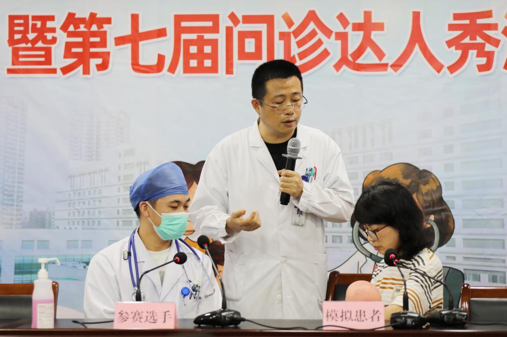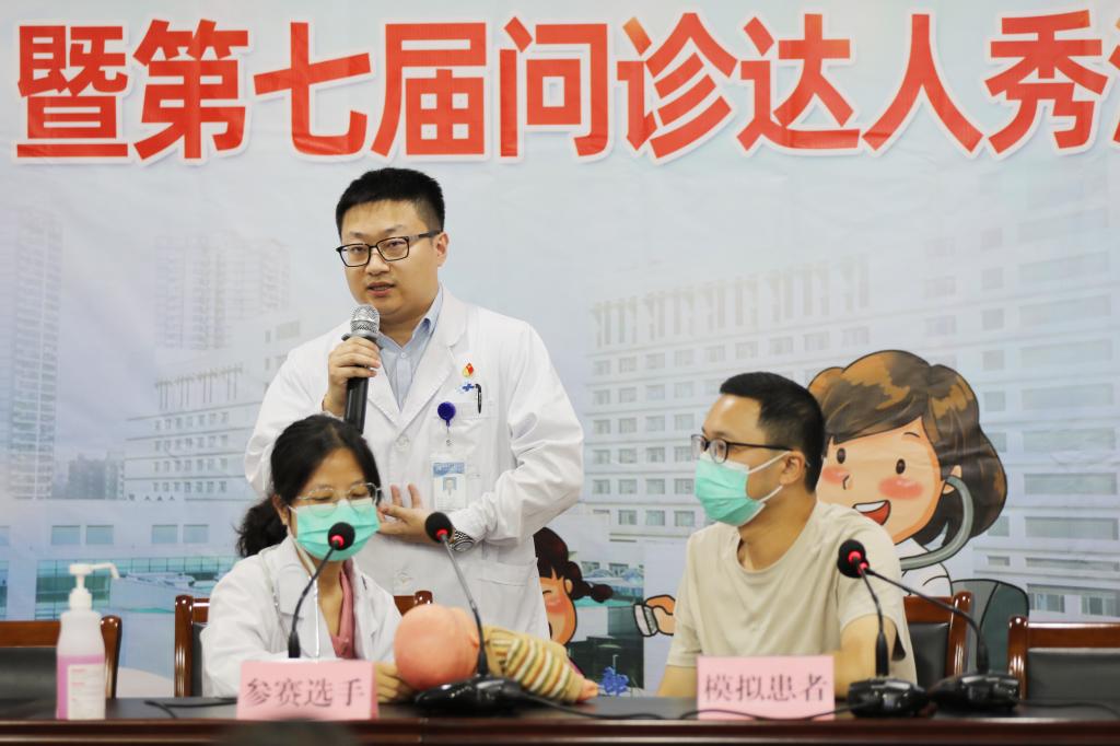 本届“问诊达人秀”模拟真实的诊疗环境,由医院在读研究生作为参赛选手,对来自各科室专家扮演的“模拟患者”进行诊疗,通过病史问诊和体格检查做出正确诊断和处理,并对“模拟患者”提出的各种难题进行沟通。同时为了培养团队协作能力,选手可以现场求助上级指导老师。这不仅考验参赛选手的实战能力,更能真实反映出参赛选手的专业知识和现场应变能力。