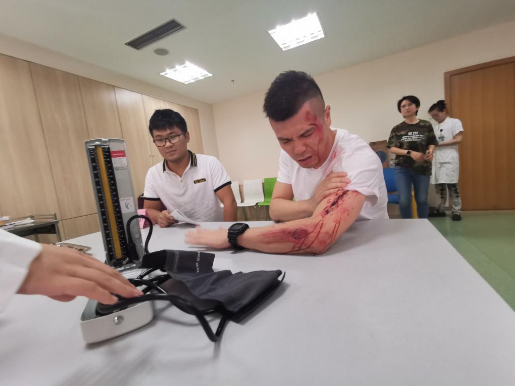 此次本科阶段的情景模拟课程,是无锡地区首次将情景模拟教学与临床本科课程进行有机融合的尝试。所有案例都精心设计,力求贴近临床实际。其中一个案例讲述了一名肝硬化患者因为腹痛就诊的过程。围绕此案例进行了剧本设计,高度还原病房环境,饰演患者的同学进行了精准的化妆,黄疸、蜘蛛痣、肝掌等体征逼真呈现。在案例演绎的环节中,通过现场角色的融入,体格检查、患者主诉、实验室检查、患者情绪变化等让医学生们在实战情景中学习如何迅速评估、诊断疾病、采取规范的治疗措施等。通过此次案例演绎,医学生们不仅掌握了腹痛的诊疗思维与肝硬化的诊断要点,还熟练掌握了腹水穿刺的基本技能, 也对与这类患者的沟通技巧有了进一步的了解。