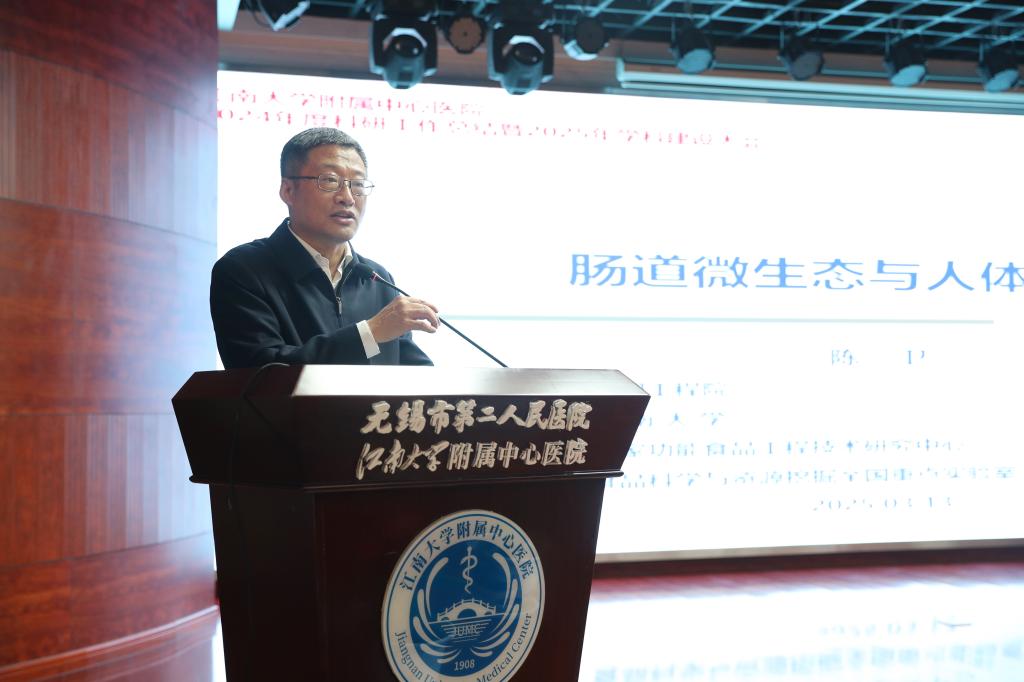 校长、党委副书记、中国工程院院士陈卫教授以“肠道微生态与人体健康”为主题,进行了精彩的专题授课。他从自己的科研生涯成就和工作经历出发,分享介绍了前沿科研理念、实践经验、当前成果等,以丰富的科研经历拓宽了医院科研人员的视野,激发了大家的创新思维。